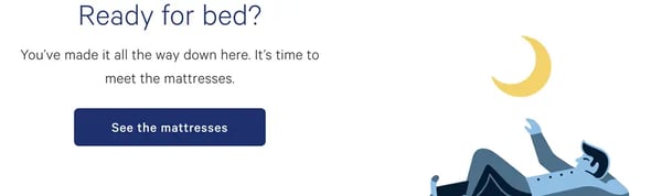Casper uses wit and straight-forward language to make clicking more appealing. You made it this far, Casper points out. Want to see the mattresses?