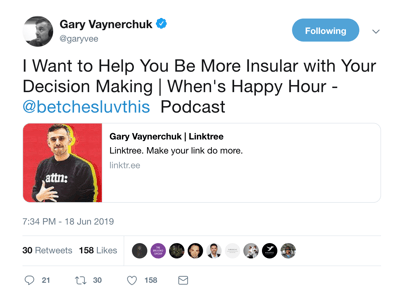 Gary Vee sharing his latest podcast via Linktree.