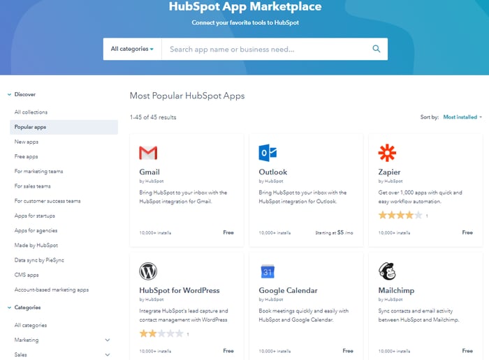 The HubSpot Marketplace features hundreds of third-party apps that HubSpot users can integrate with their HubSpot Accounts.